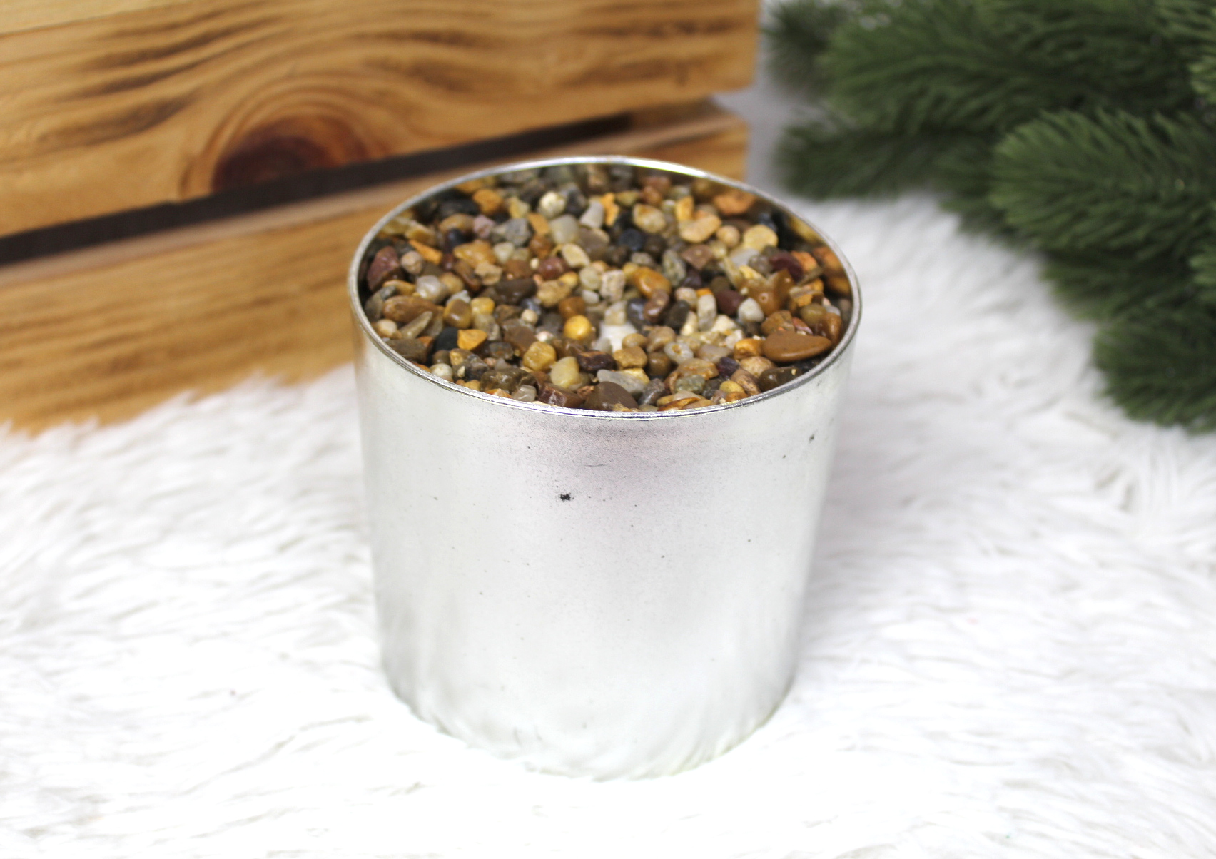 l Osłonka, doniczka dekoracyjna z kamykami i styropianem SREBRNA plastik 10x10 cm