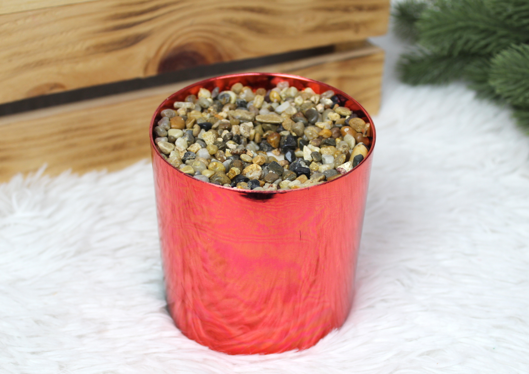 l Osłonka, doniczka dekoracyjna z kamykami i styropianem CZERWONA plastik 10x10 cm