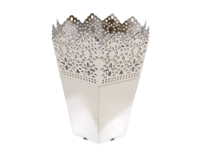Osłonka, doniczka dekoracyjna sześciokątna AŻUR SREBRNA plastik 14x11 cm
