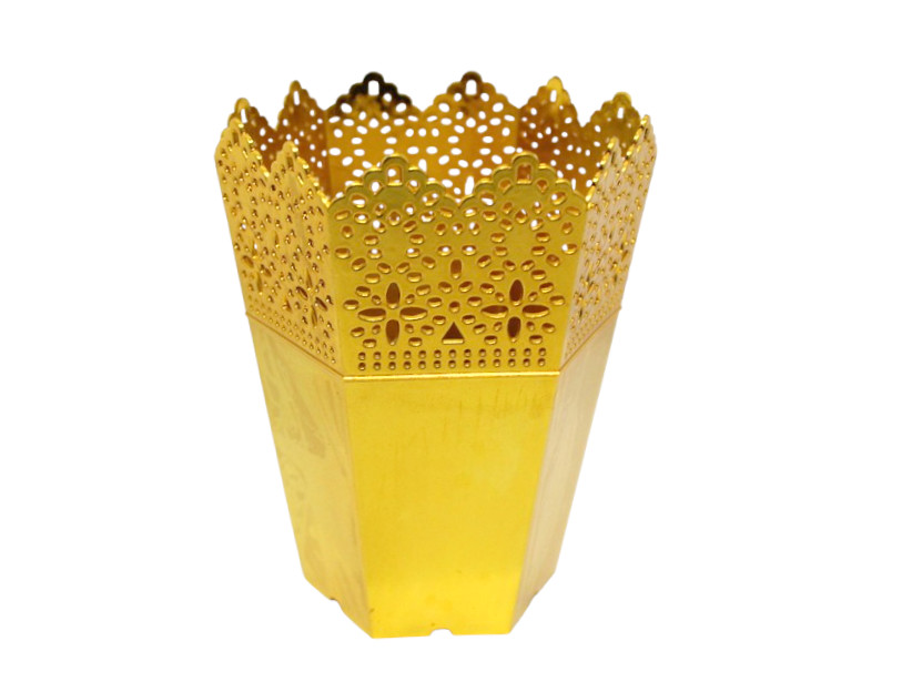 Osłonka, doniczka dekoracyjna sześciokątna AŻUR ZŁOTA plastik 14x11 cm