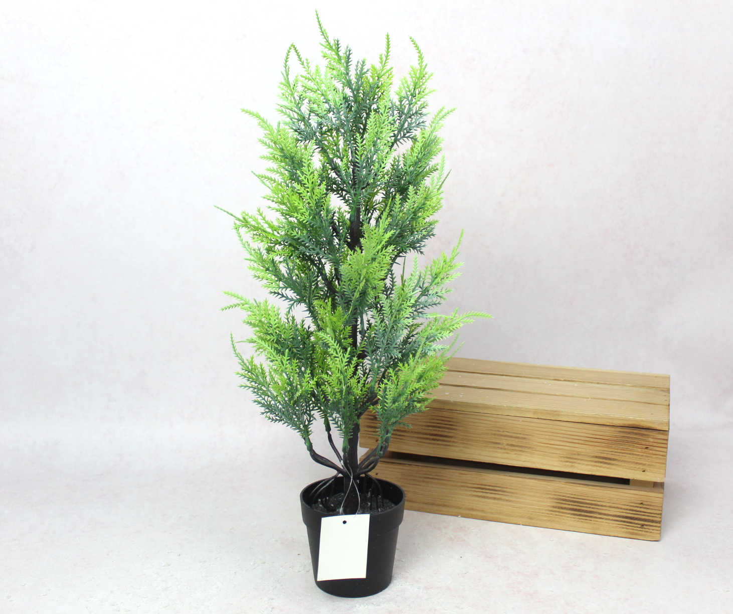 Kwiat, drzewko silikonowe PE TUJA w doniczce 45 cm SZARO ZIELONA