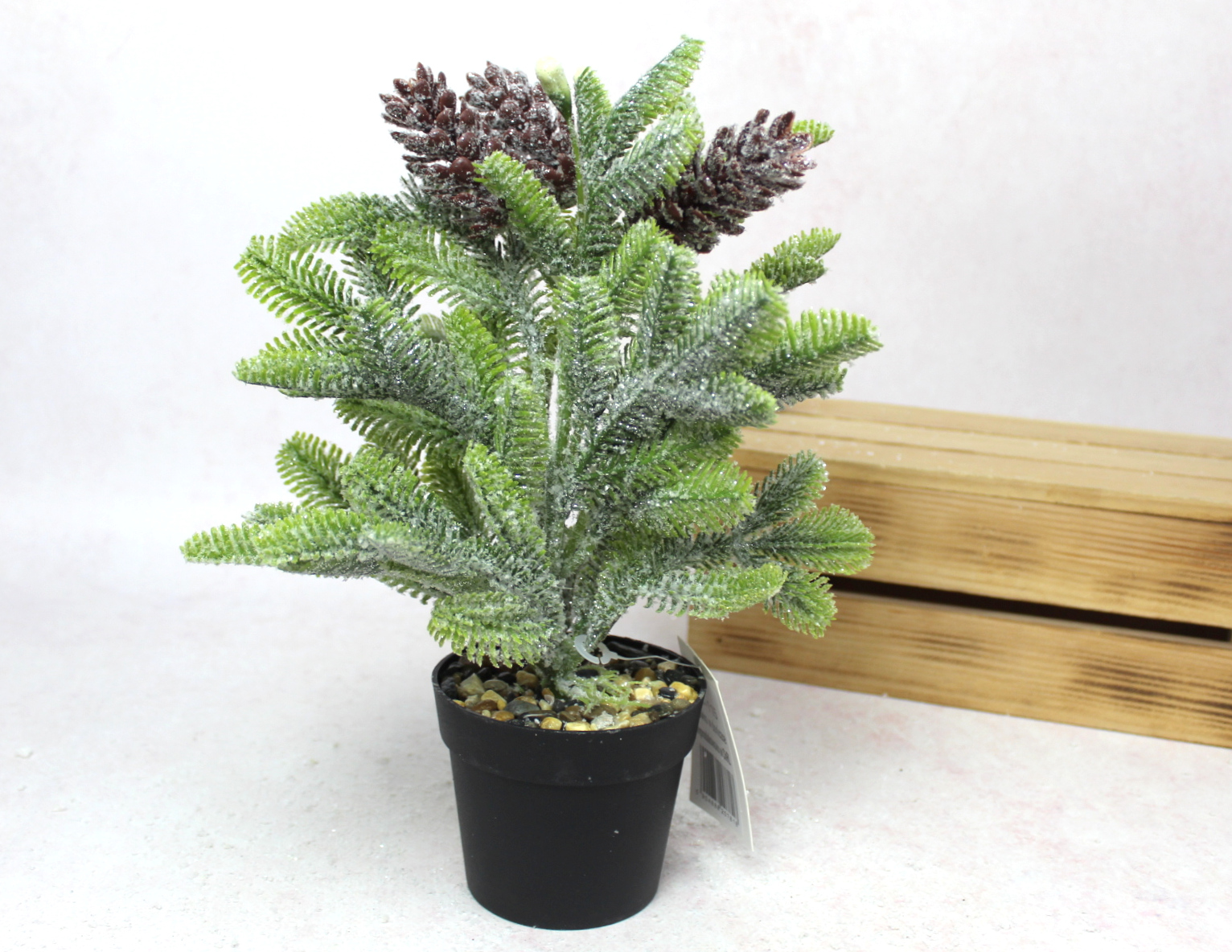 Kwiat, drzewko silikonowe PE JODŁA z szyszkami w doniczce 30 cm
