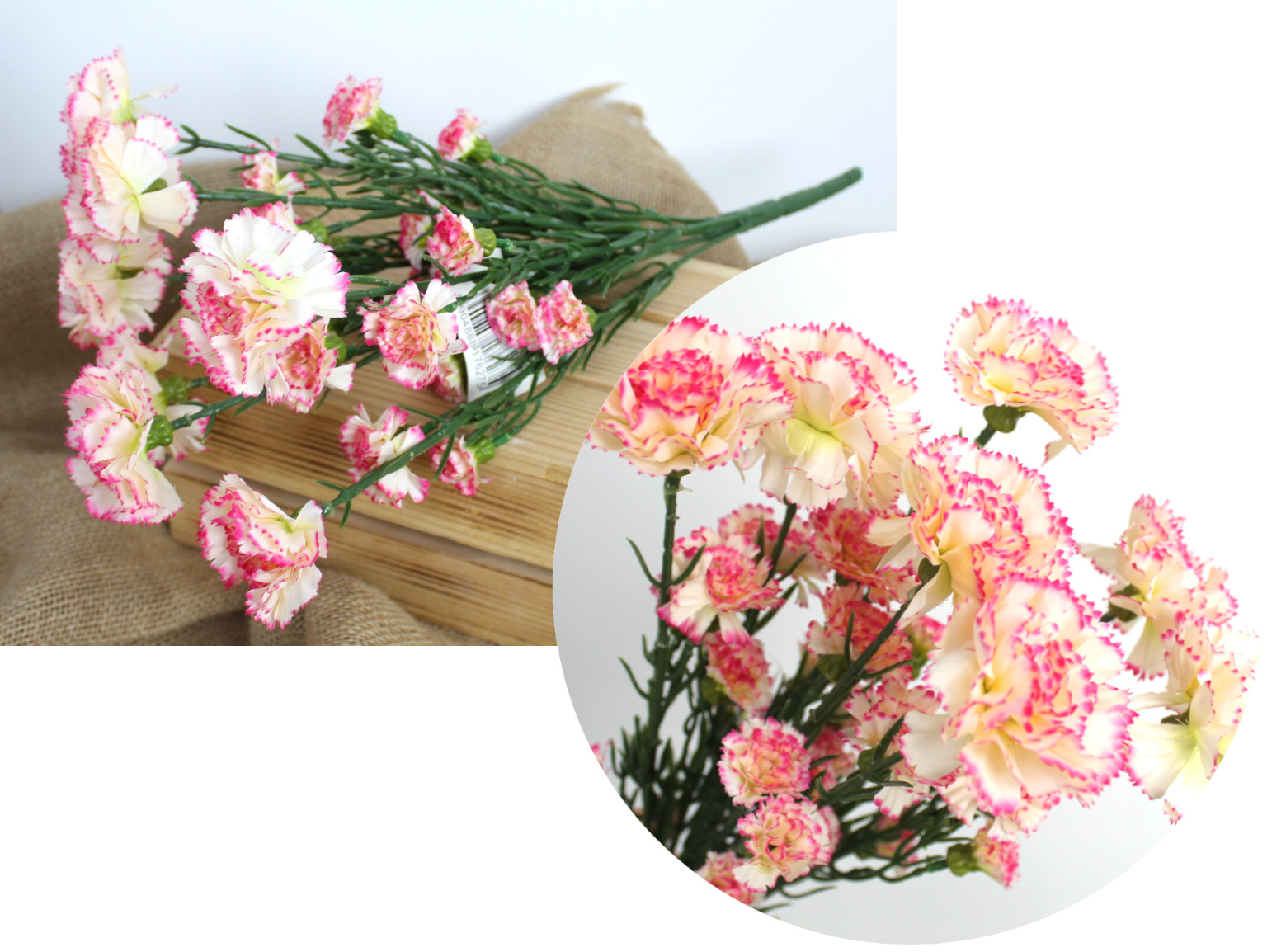 Bukiet GOŹDZIK, CEGIEŁKI wys. 45 cm 7 łodyg (kwiat 2,5-6 cm) KREMOWY RÓŻOWE KOŃCE