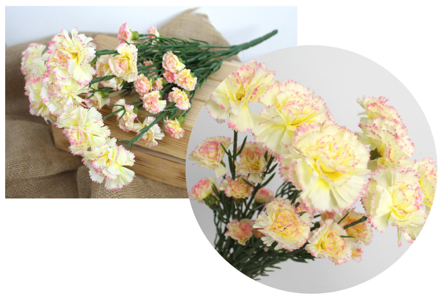 Bukiet GOŹDZIK, CEGIEŁKI wys. 45 cm 7 łodyg (kwiat 2,5-6 cm) ŻÓŁTY Z JASNYM RÓŻEM