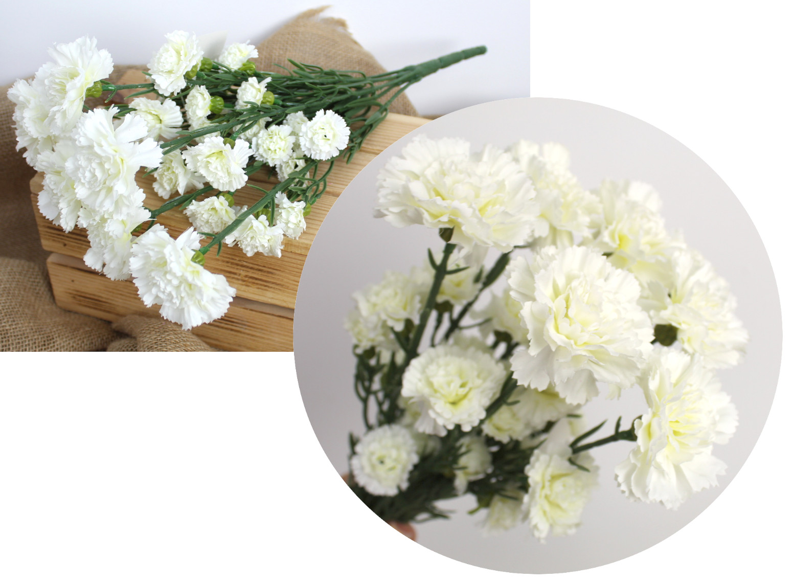 Bukiet GOŹDZIK, CEGIEŁKI wys. 45 cm 7 łodyg (kwiat 2,5-6 cm) BIAŁY