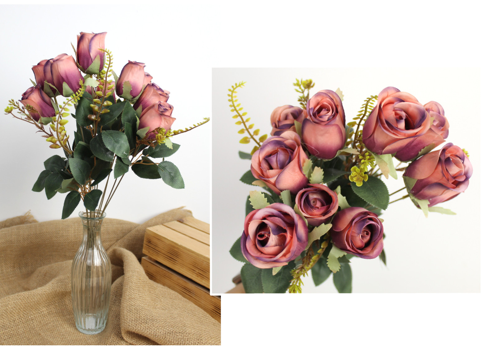 Bukiet RÓŻA nierozwinięta wys. 50 cm 11 łodyg (11 kwiatów 5,5x4 cm) RÓŻOWO-FIOLETOWA