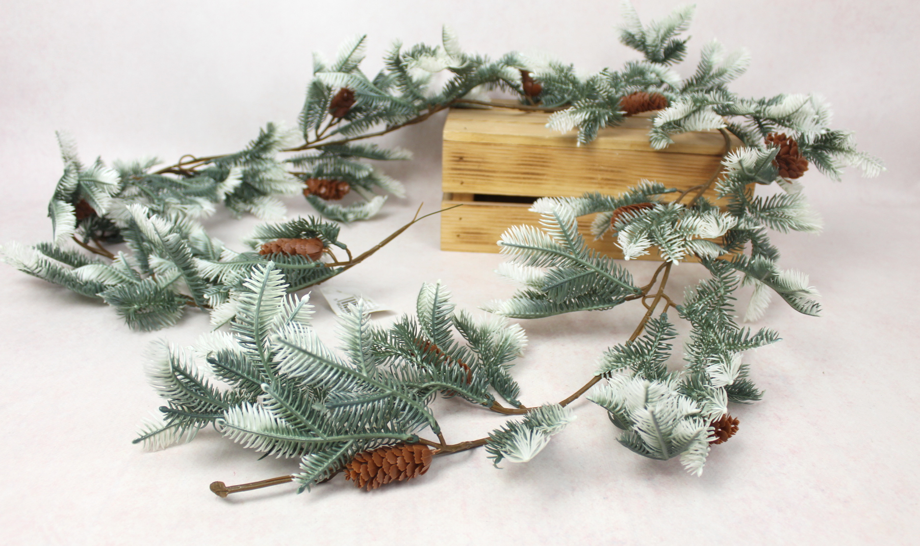 Girlanda silikonowa PE SOSNA z szyszkami 180 cm BIAŁO ZIELONA