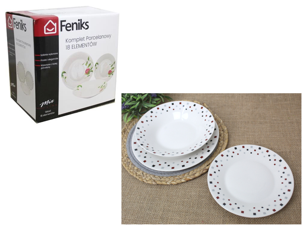 Zestaw talerzy 18 el. wzór KWADRATY (MQP-3)