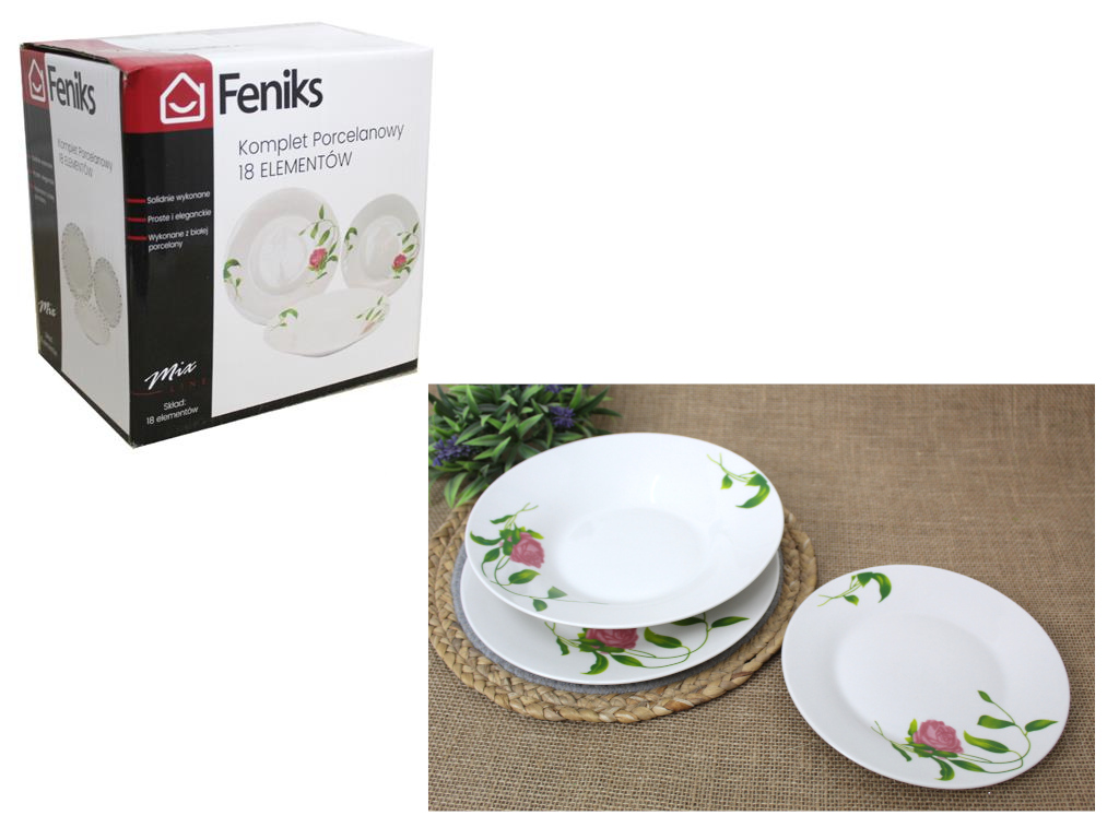 Zestaw talerzy 18 el. wzór RÓŻA (DQP-5)