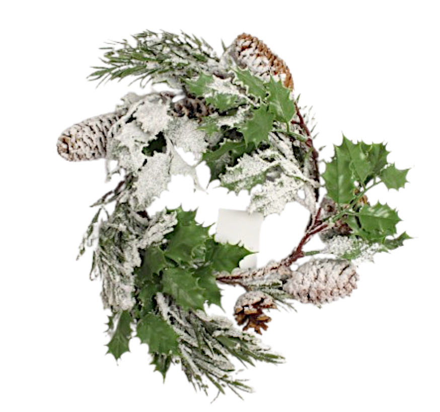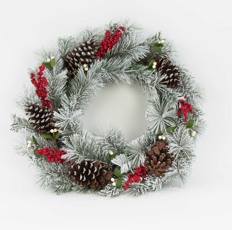 Wieniec posypany śniegiem z szyszkami 40 cm