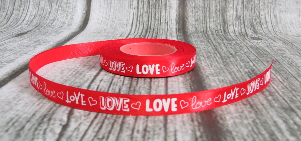 Wstążka satynowa z nadrukiem LOVE CZERWONA 12mm x 23m - 1 szt