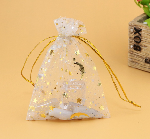 Woreczek na biżuterię, upominek GWIAZDKI 9x12 cm TRANSPARENTNY