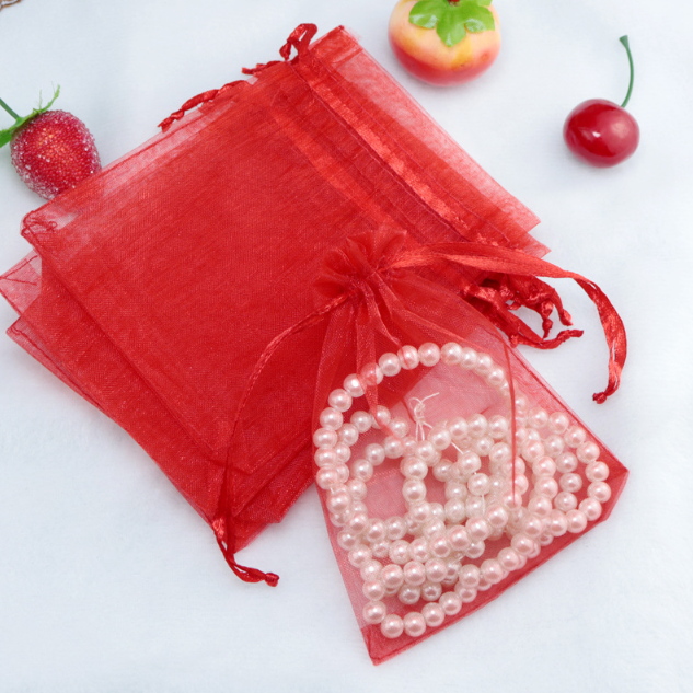 Woreczek na biżuterię, upominek 40x30 cm TRANSPARENTNY CZERWONY