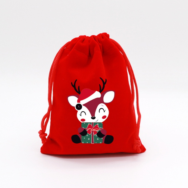 Worek na prezenty, upominki welurowy 16x10 cm RENIFEREK