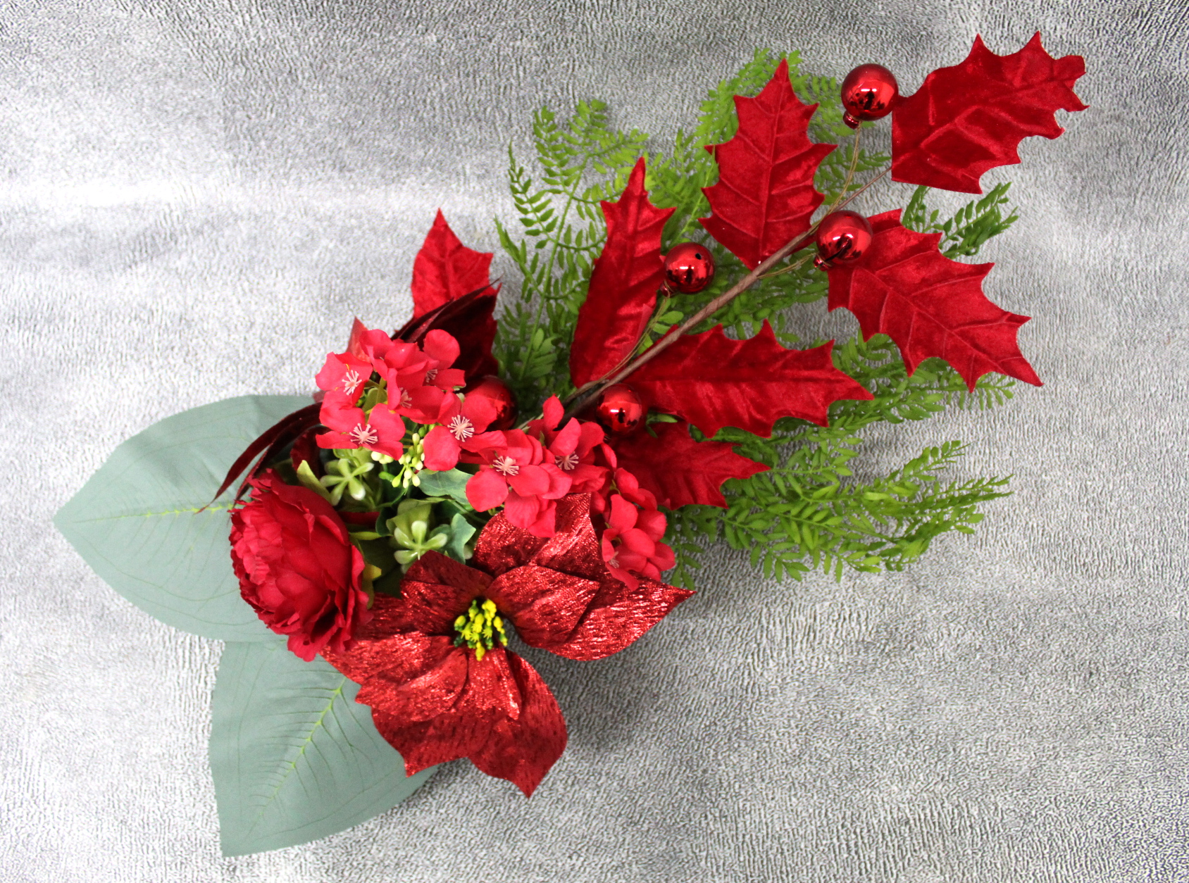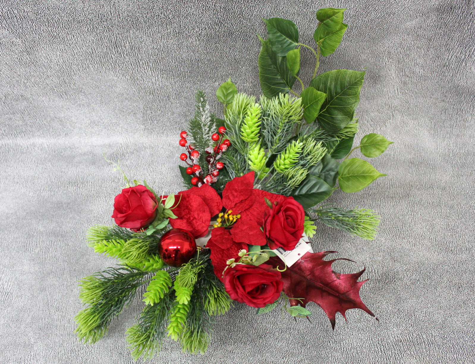 Stroik zalewany misa BOŻONARODZENIOWY Gwiazda Betlejemska czerwone aksamitne liście z bombkami (ok. 60x30x25 cm) ok. 1,5 kg