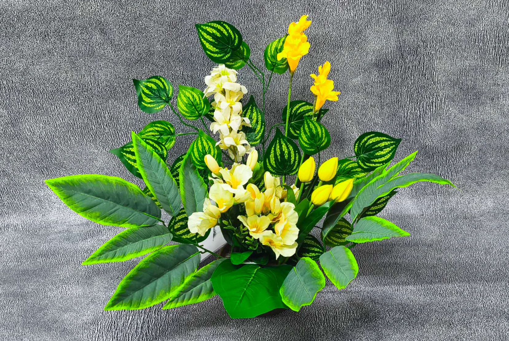 Stroik zalewany misa WIOSENNY róże, storczyk, tulipany, fiołki ŻÓŁTY (ok. 60x60x40 cm) ok. 1,5 kg