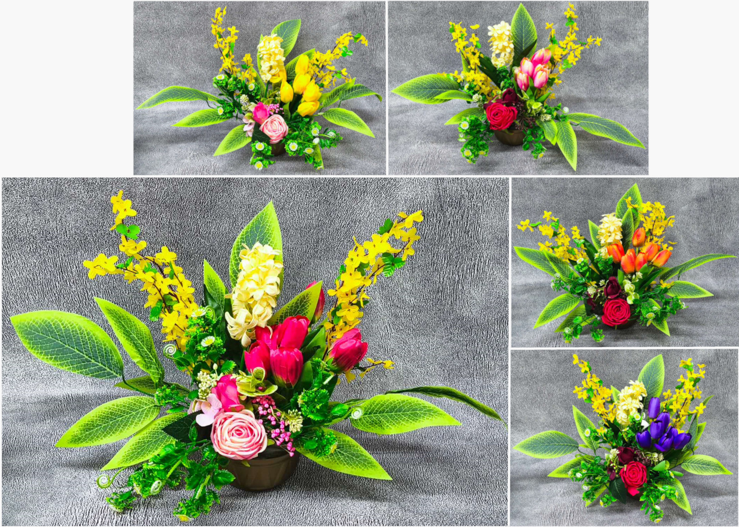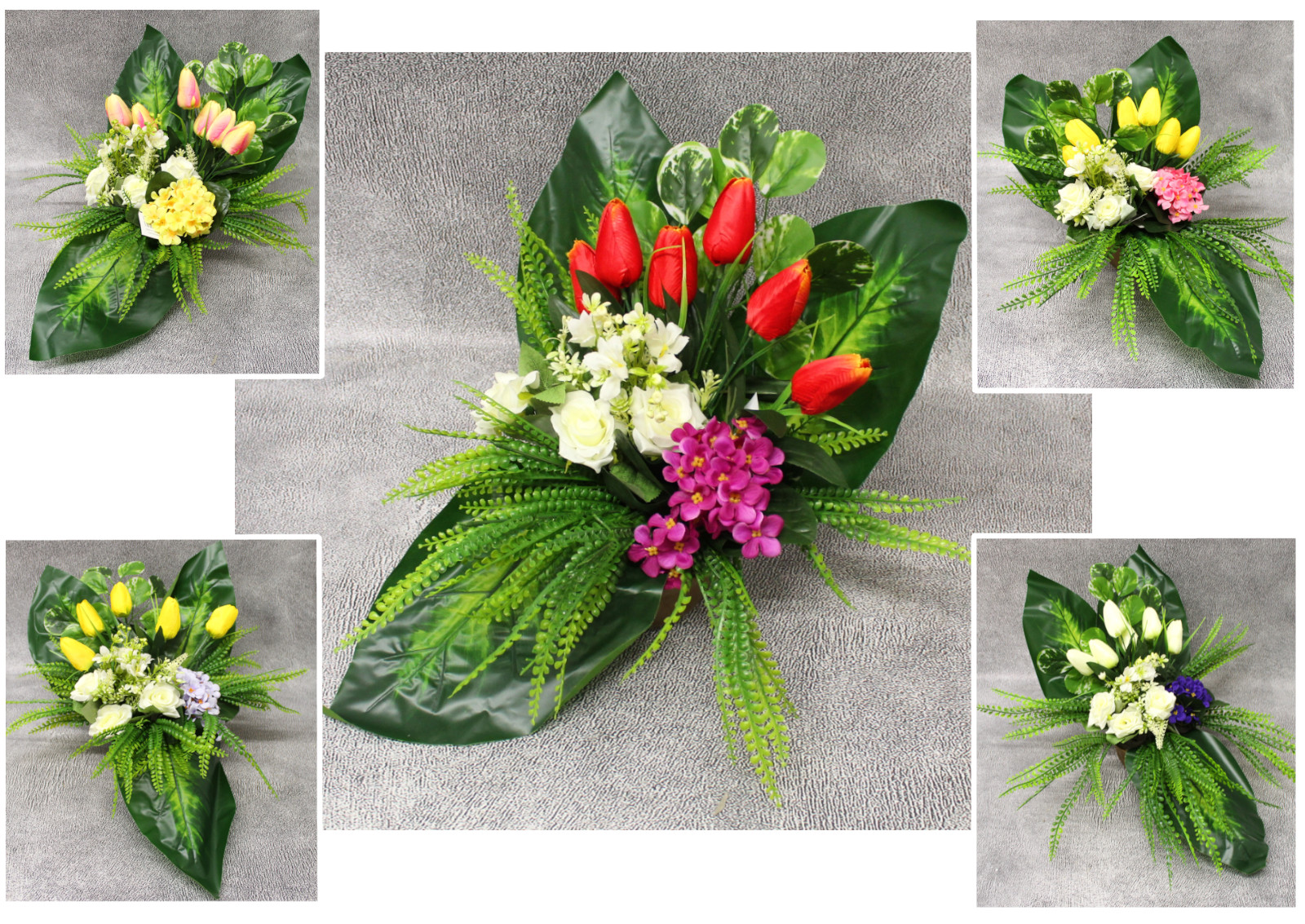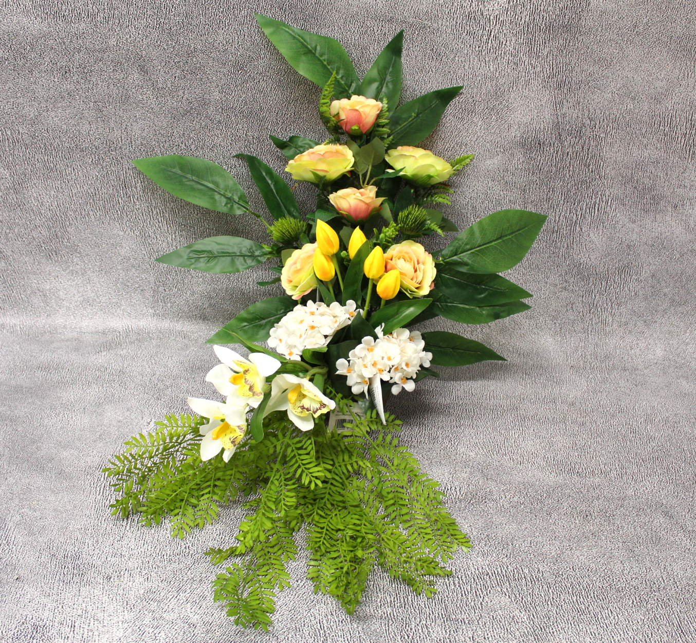 Stroik zalewany misa WIOSENNY tulipany, storczyk, różyczki, bluszcz (ok. 80x32x40 cm) ok. 1,9 kg