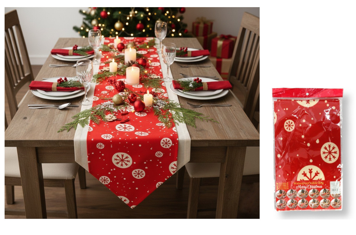 Bieżnik, szarfa na stół świąteczny, bożonarodzeniowy ŚNIEŻYNKI 180x32 cm CZERWONY