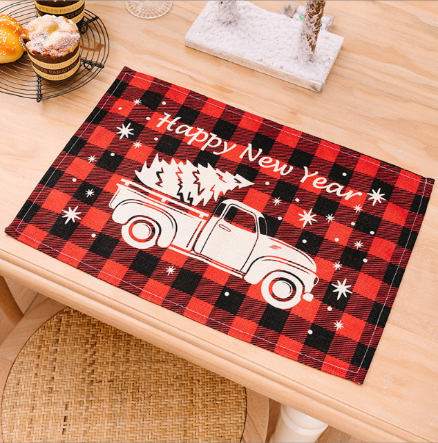 Mata na stół świąteczna, bożonarodzeniowa SAMOCHÓD 43x29 cm CZERWONO -CZARNA KRATA
