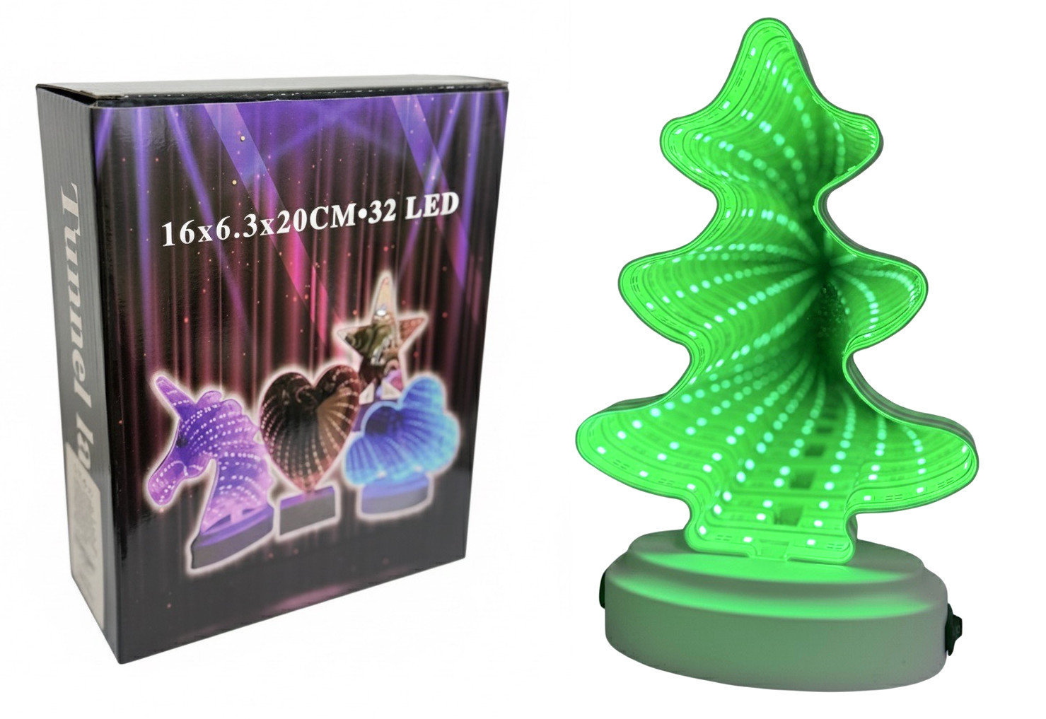 Dekoracja LED lustro 3D CHOINKA 19x13 cm