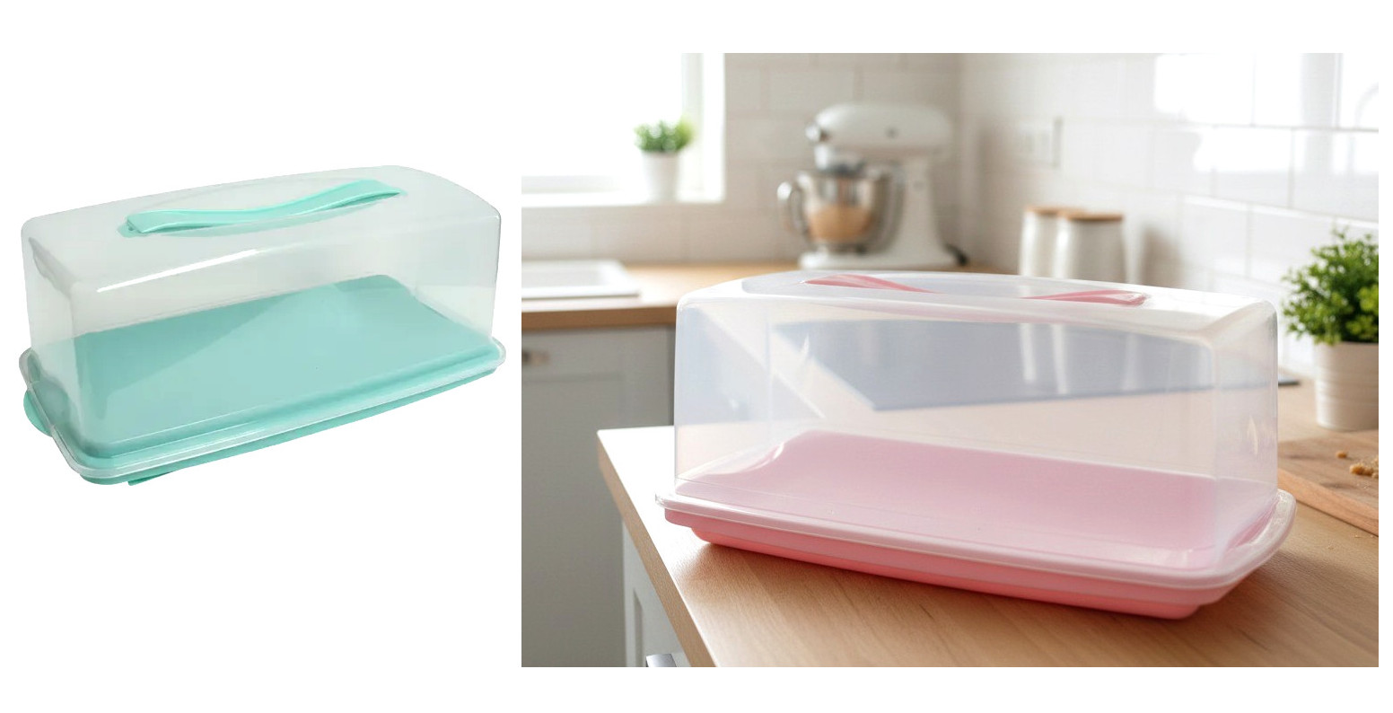 Pojemnik plastikowy zamykany na ciasto PROSTOKĄTNY 36x16,5x14,5 cm MIX KOLOR PASTEL