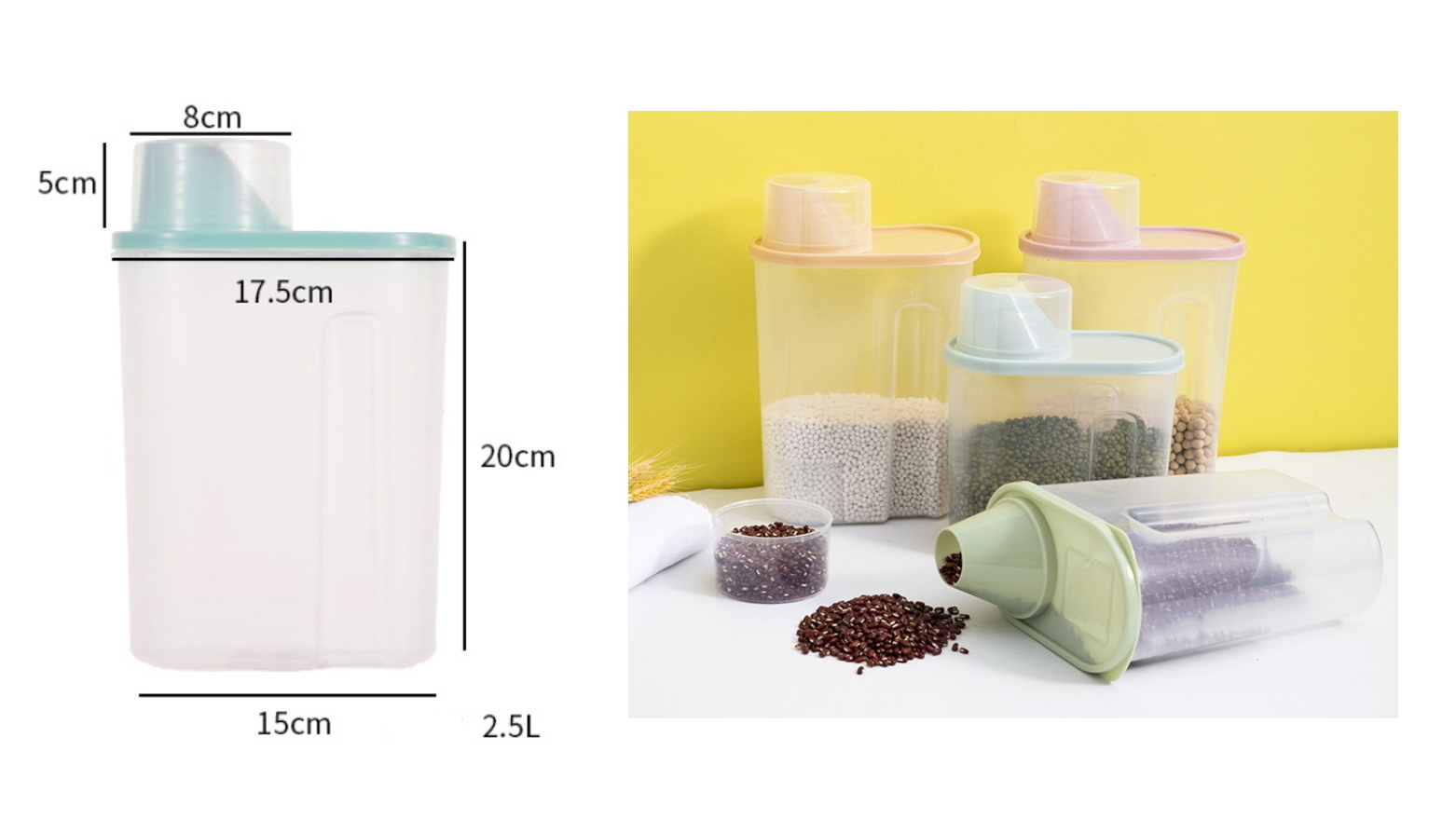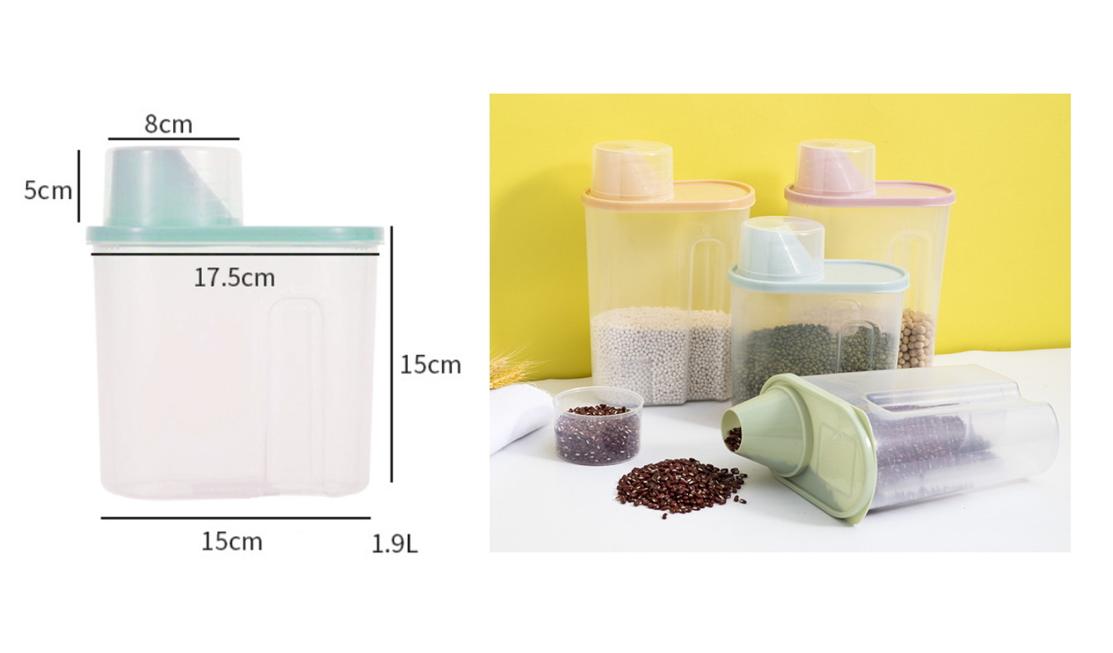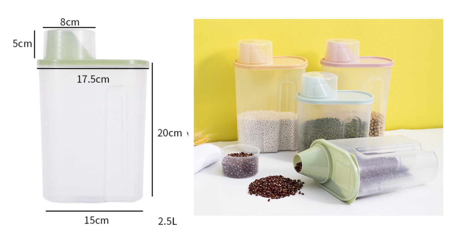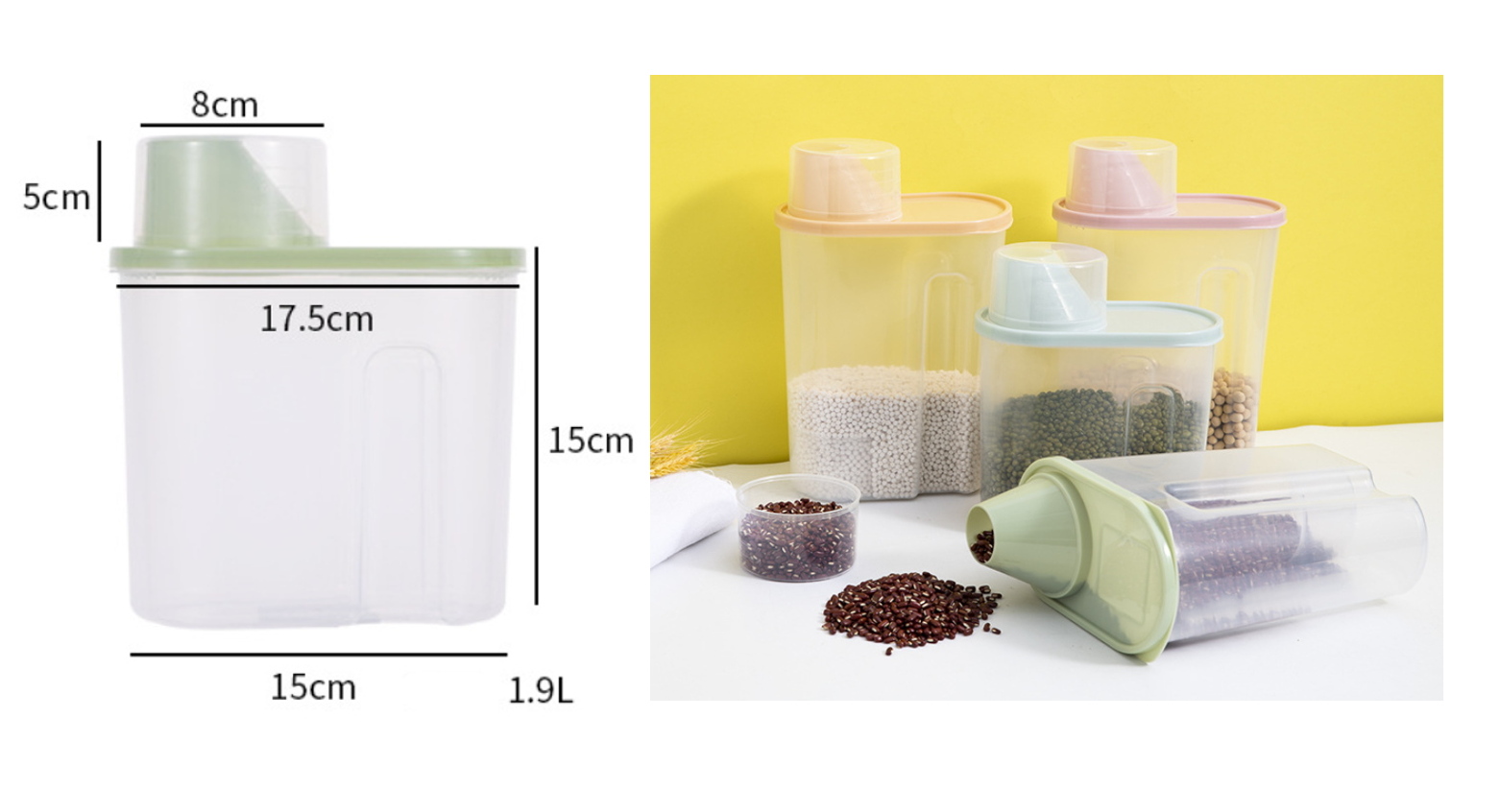 Pojemnik z pokrywką i miarką do przechowywania zielony PLASTIK 20x17,5x15 cm