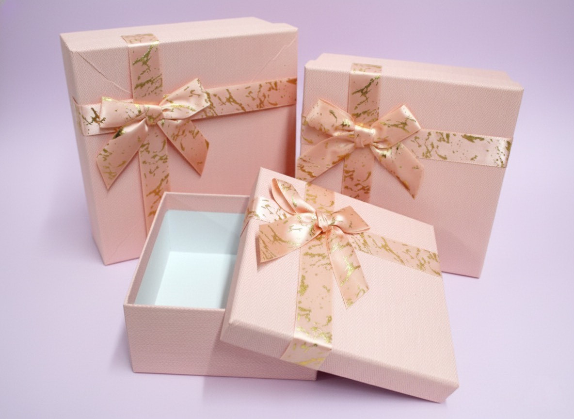 Pudełko prezentowe, kartonowe z kokardą kpl 3 szt RÓŻOWE