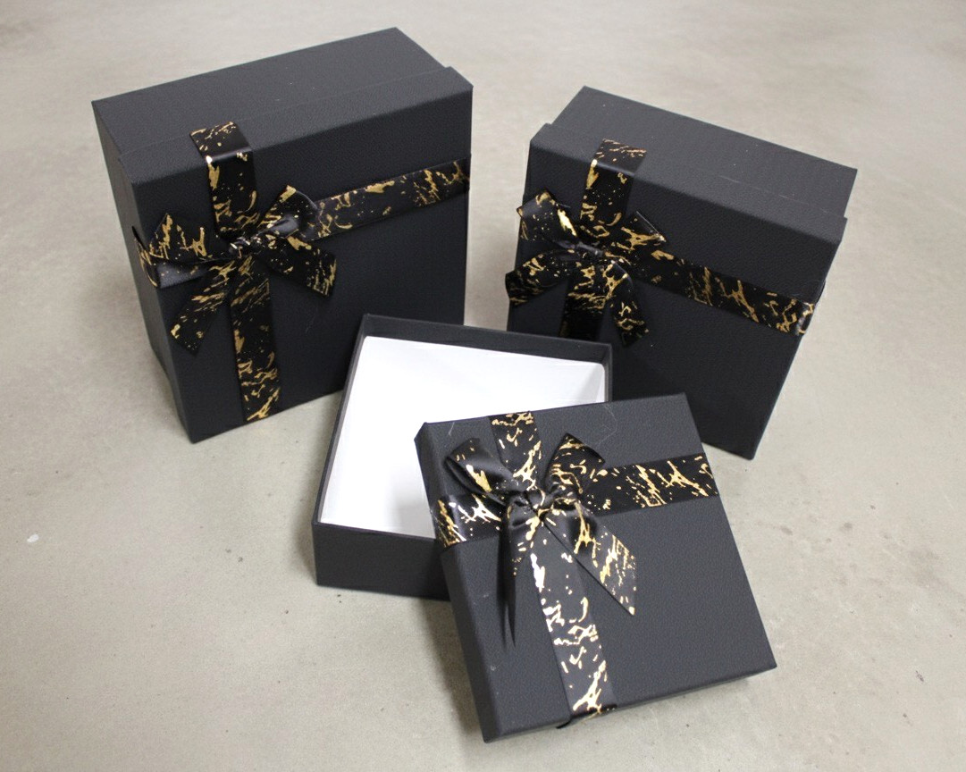 Pudełko prezentowe, kartonowe z kokardą kpl 3 szt CZARNE