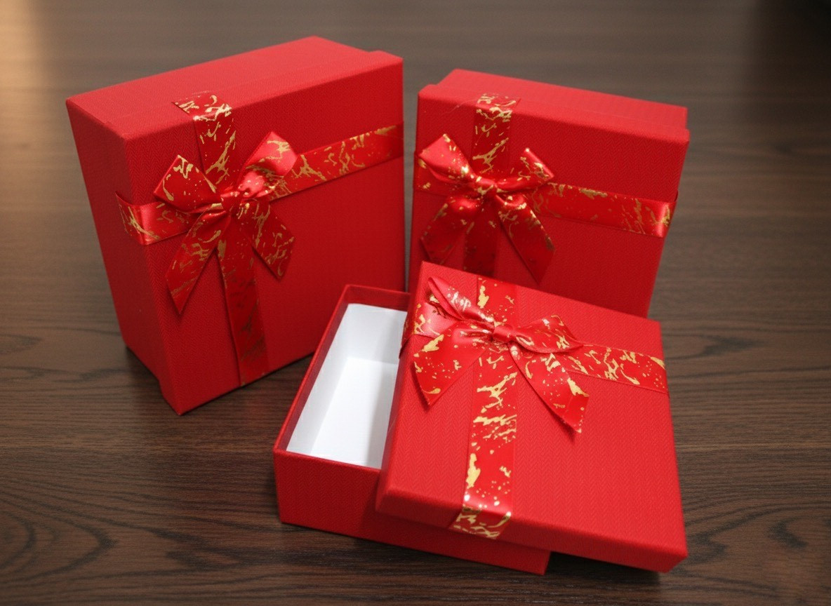 Pudełko prezentowe, kartonowe z kokardą kpl 3 szt CZERWONE