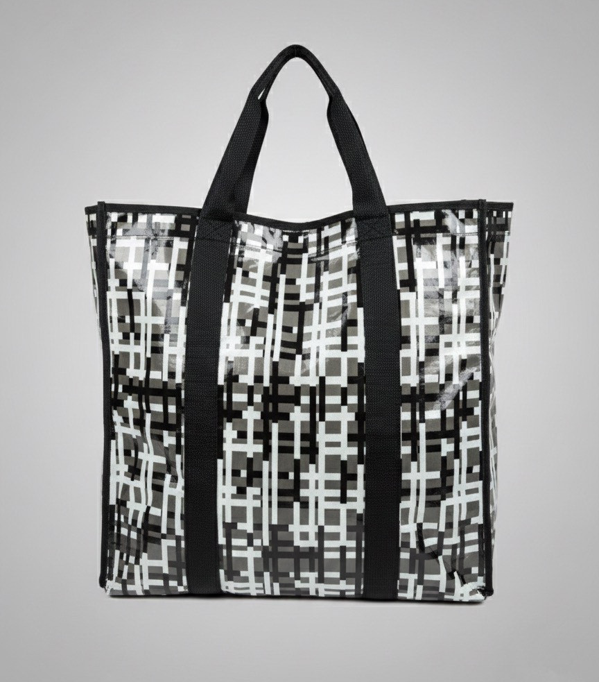 Torba na zakupy wzór czarna z białymi przeszyciami 43x33x10 cm tworzywo