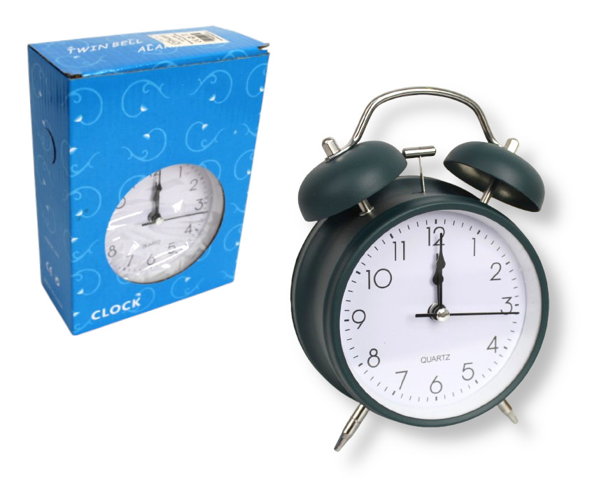Zegar, budzik OKRĄGŁY tradycyjny metalowy 16x11x5,5 cm