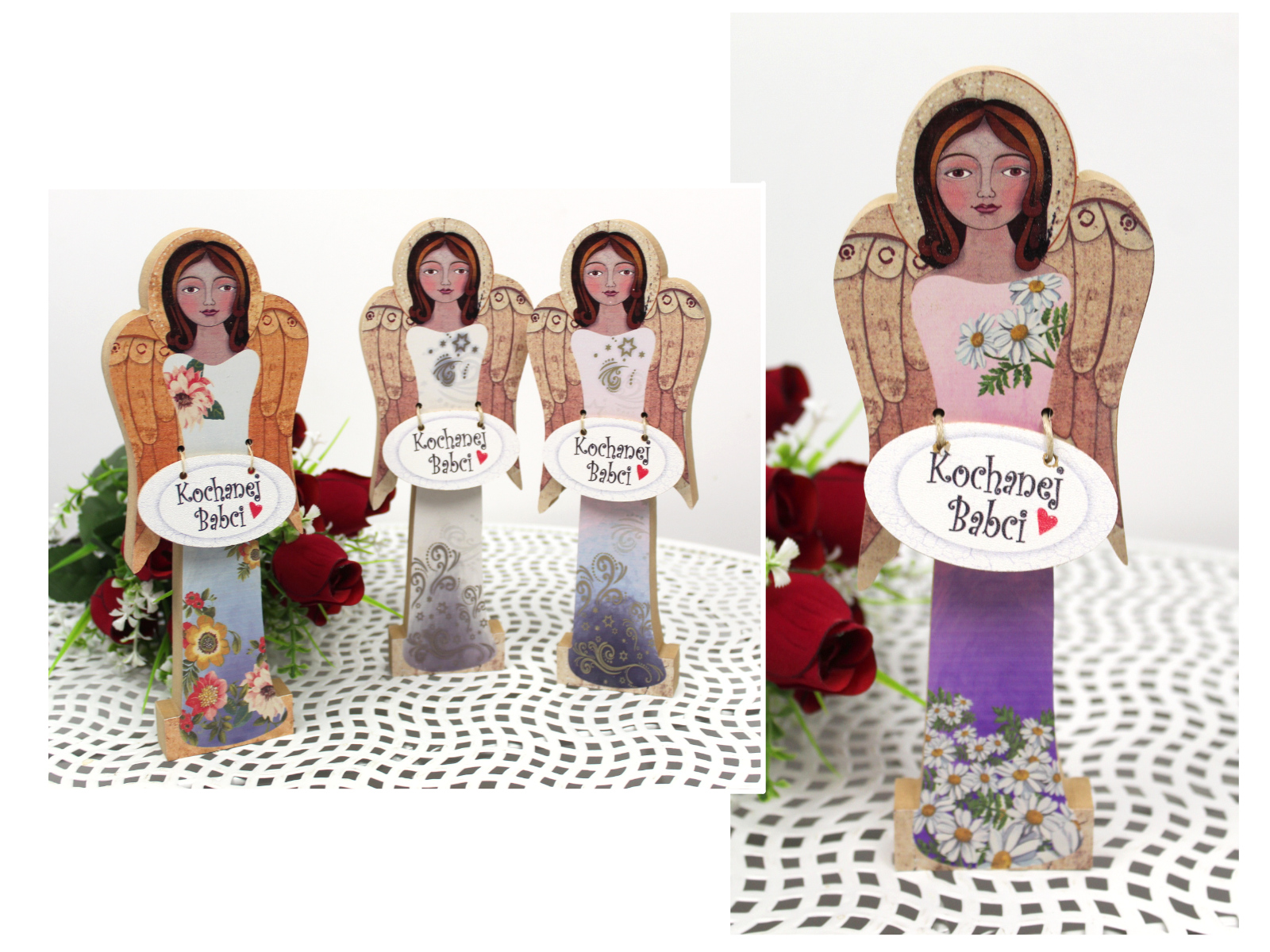 mdf Dekoracja Anioł PASTEL mały KOCHANEJ BABCI 18x6,5x2 cm - MIX KOLOR