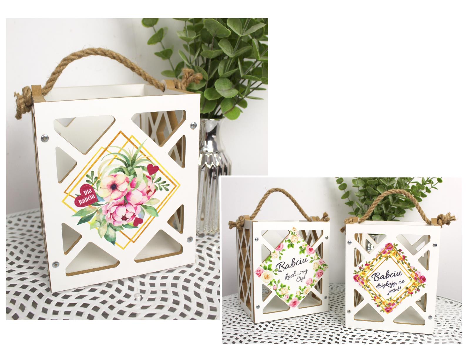 mdf Lampion DLA BABCI (mix napisów i wzorów) 19,5x16x14 cm
