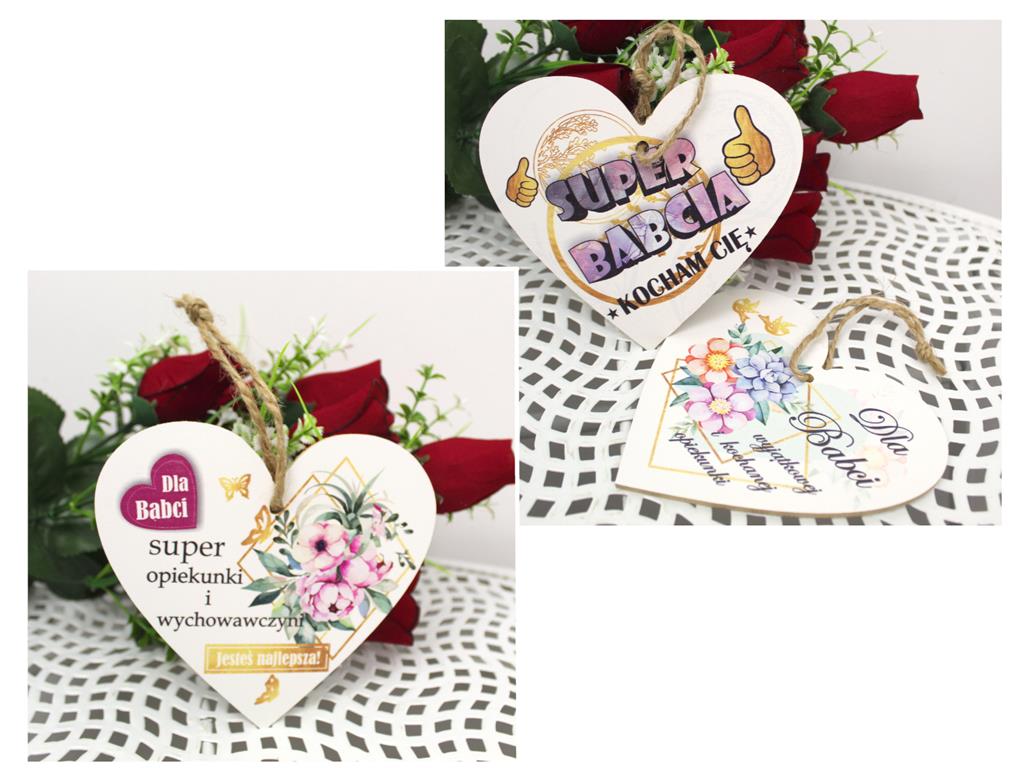 mdf Zawieszka SERCE - BABCIA (mix napisów) 20x18 cm - 1 szt