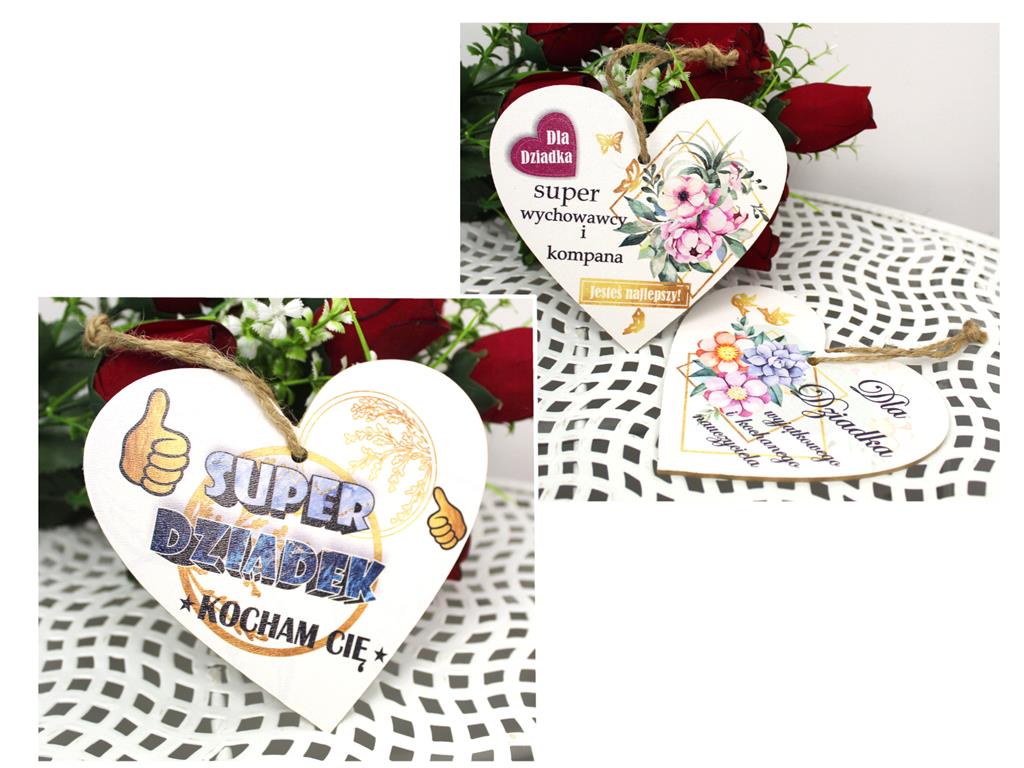 mdf Zawieszka SERCE - DZIADEK (mix napisów) 20x18 cm - 1 szt