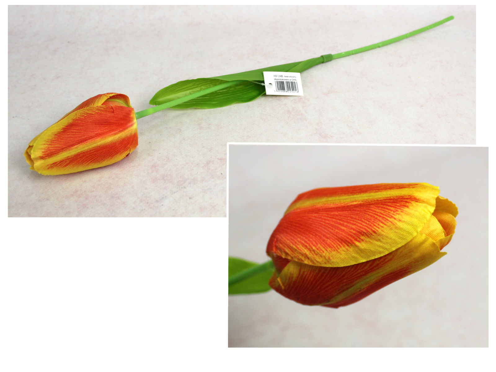 Kwiat TULIPAN pojedynczy wys. 52 cm (kwiat 6x5 cm) - POMARAŃCZOWY marmurkowy