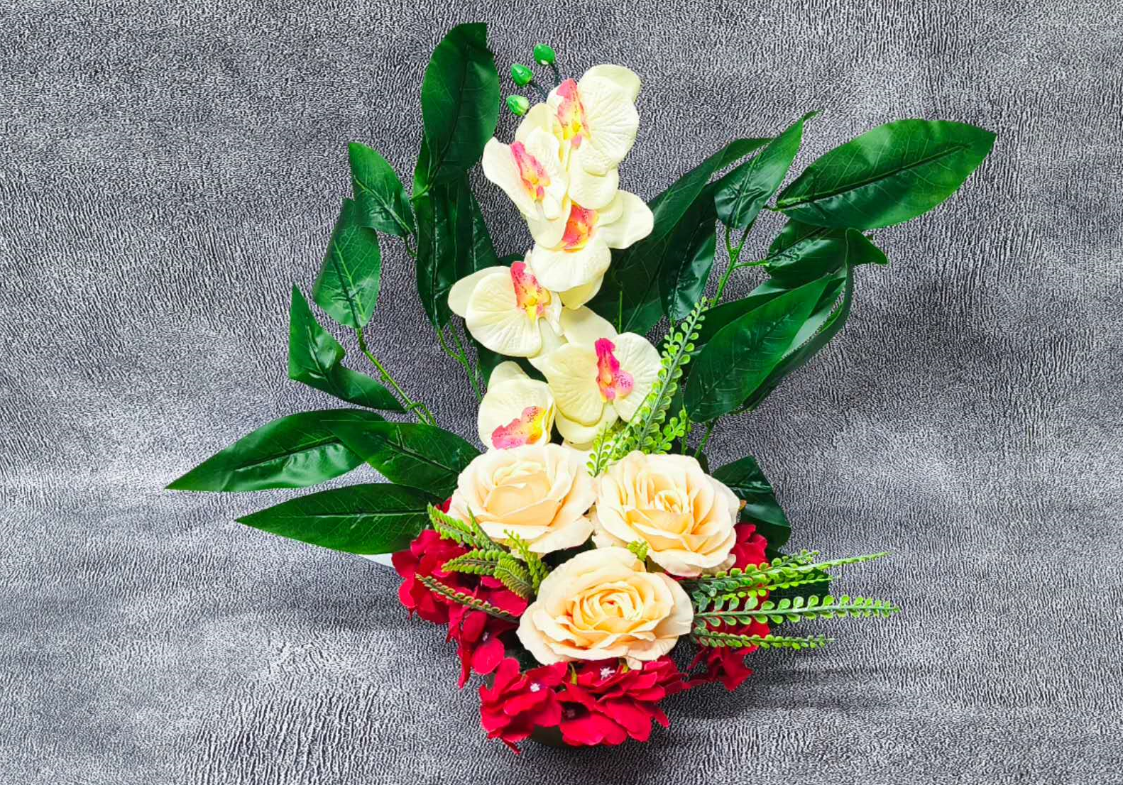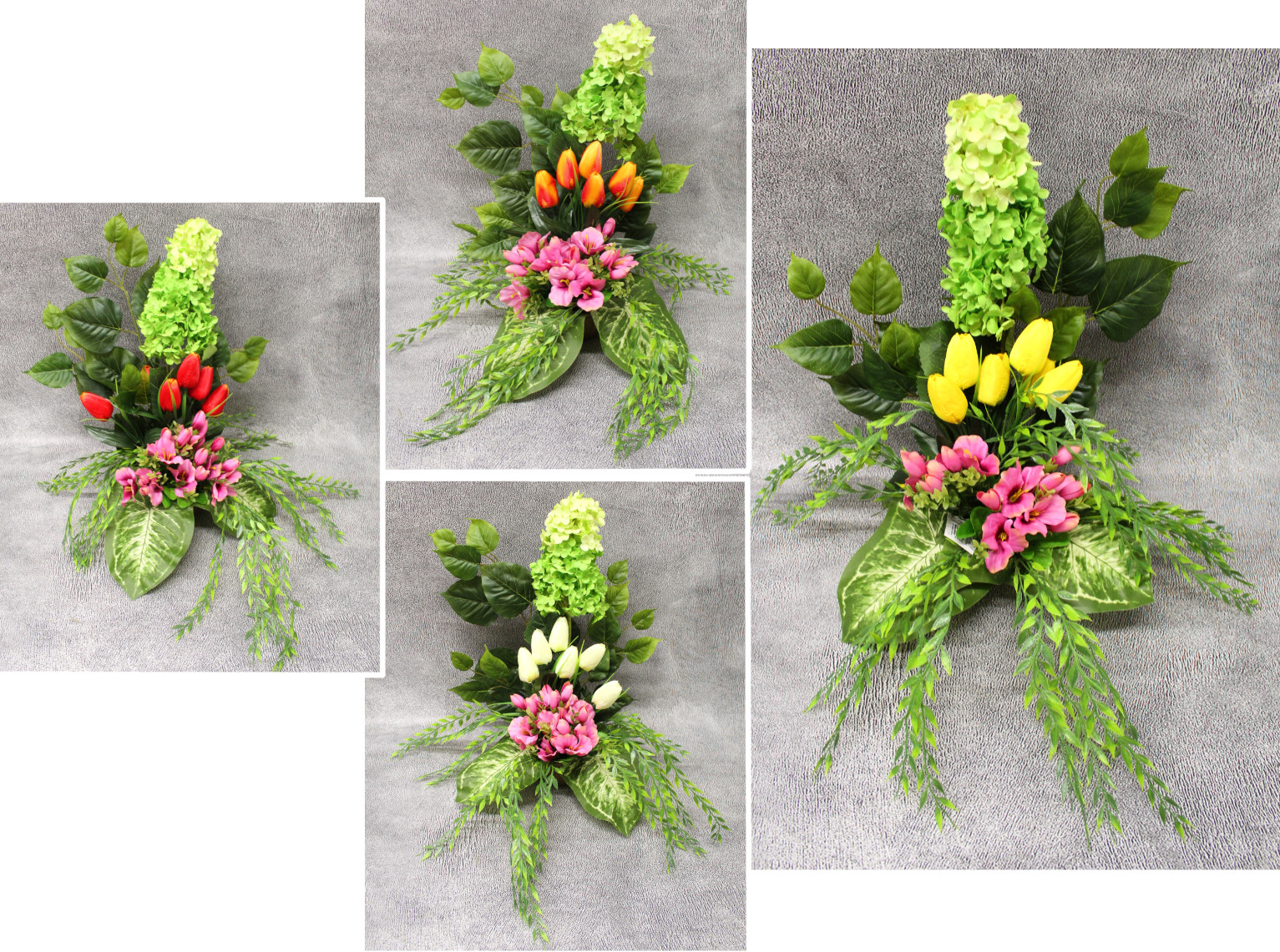 Stroik zalewany misa WIOSENNY tulipany, storczyk, różyczki, bluszcz (ok. 80x32x40 cm) ok. 1,9 kg