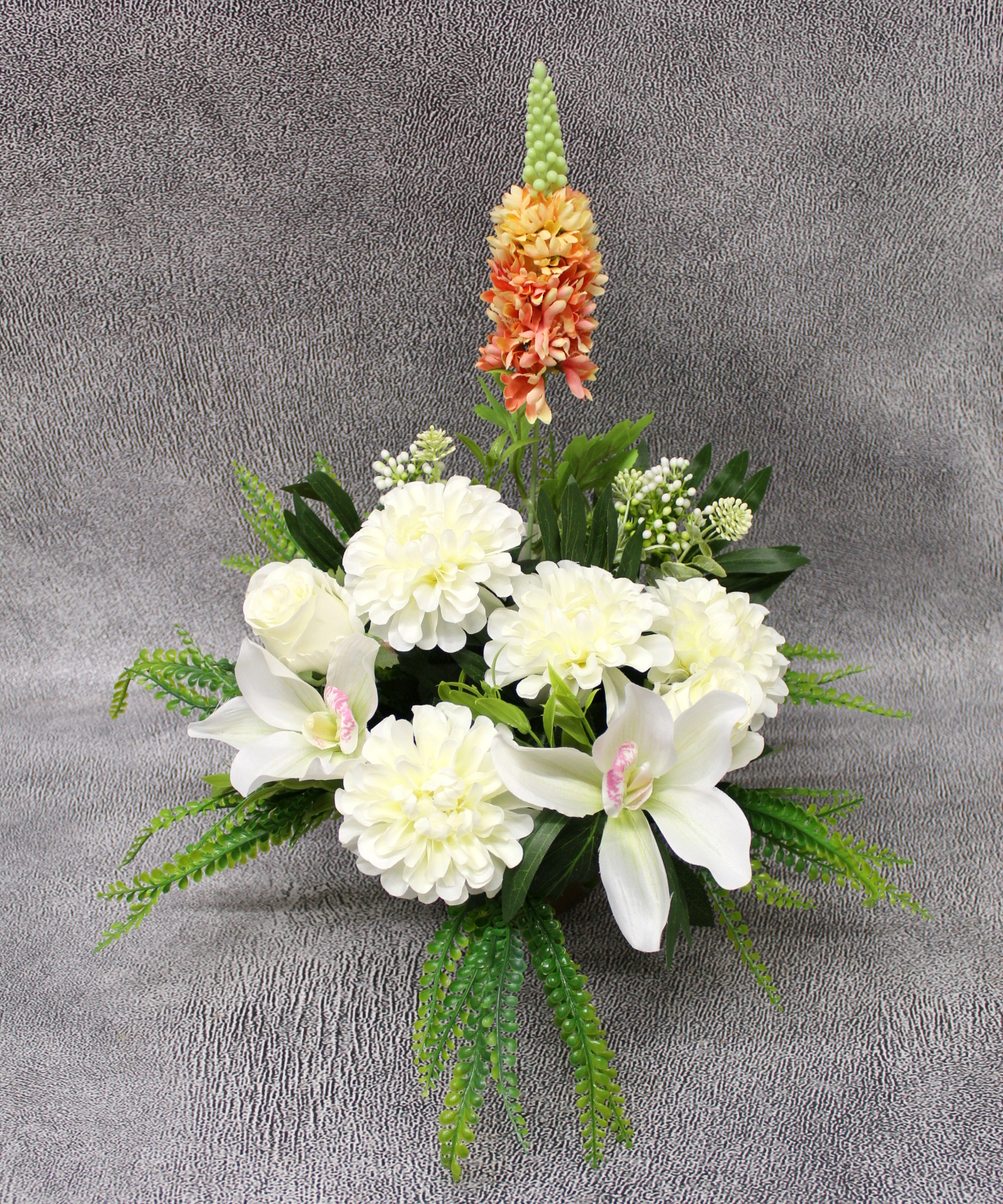 Stroik zalewany misa WIOSENNY tulipany, różyczki, storczyki BIAŁY (ok. 60x50x45 cm) ok. 1,9 kg