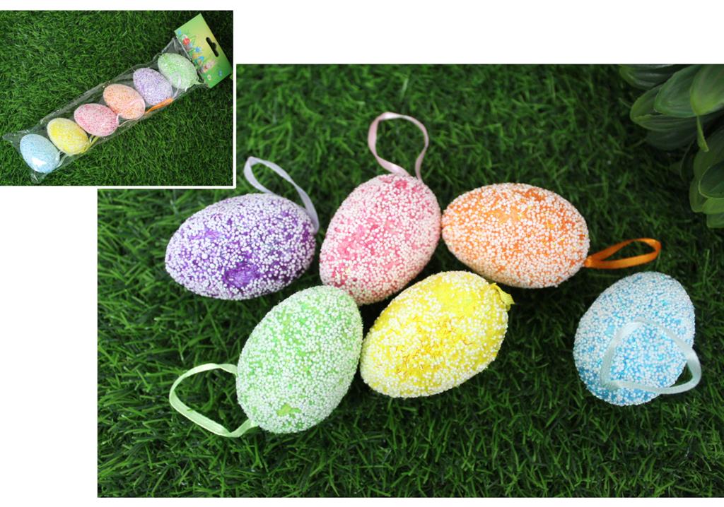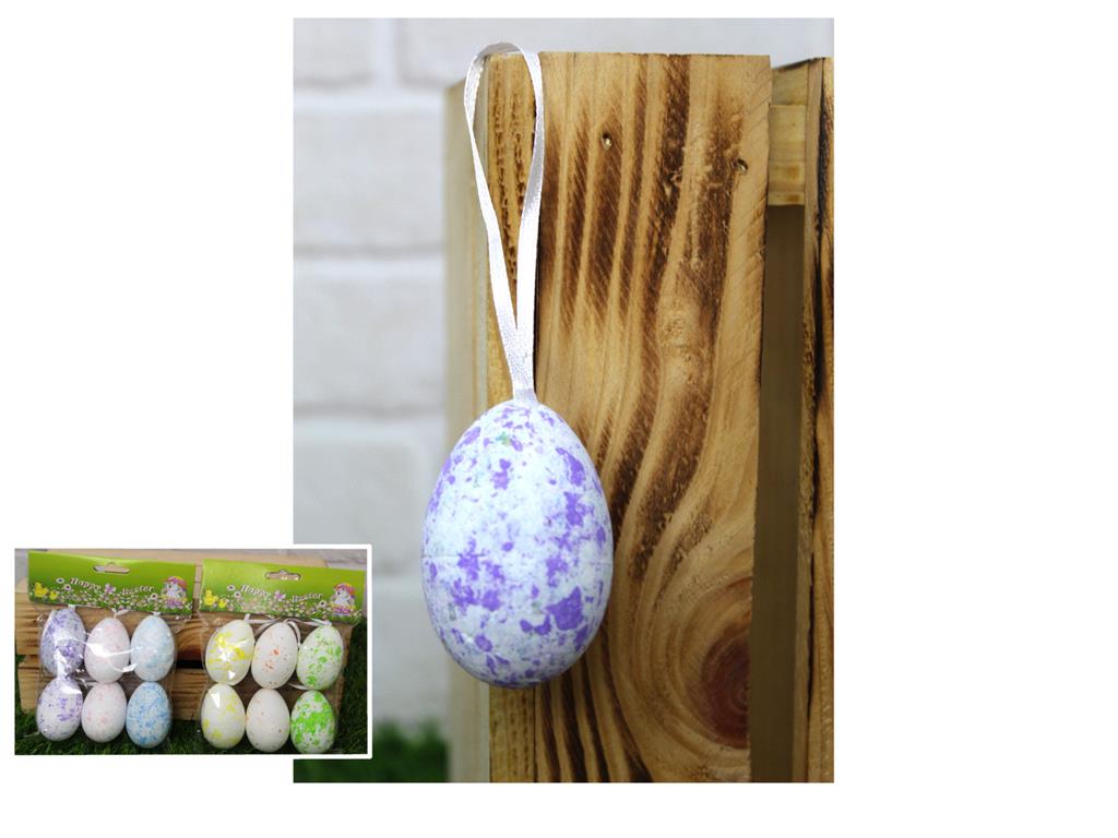 Jajka styropianowe nakrapiane z zawieszką 6x4 cm mix kolor -kpl 6 szt