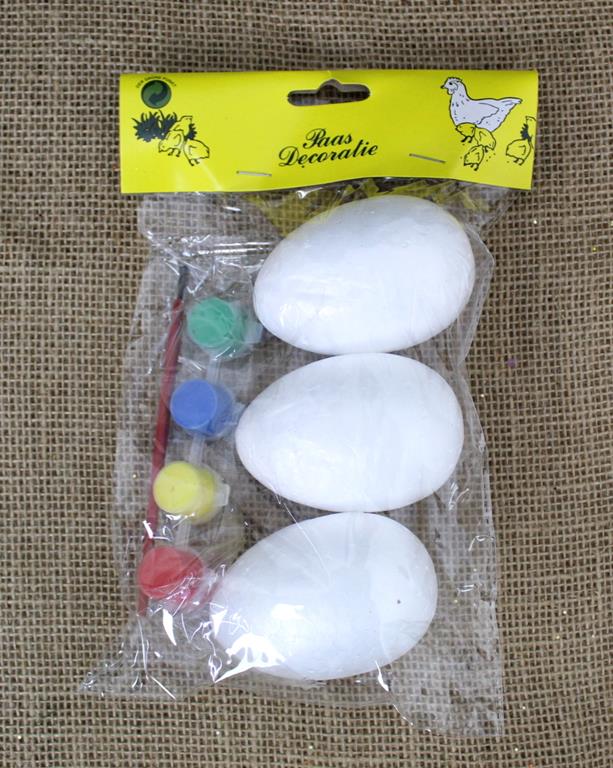 Jajka styropianowe z farbami 4 kolory i pędzelkiem do malowania kpl 3 szt