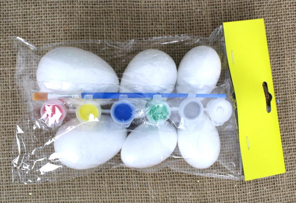 Jajka styropianowe z farbami 5 kolorów i pędzelkiem do malowania kpl 6 szt