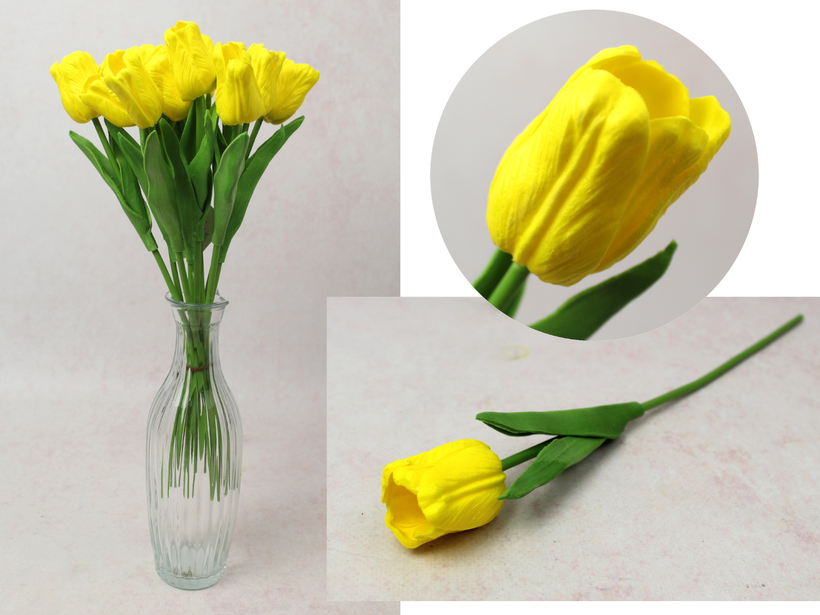 Kwiat TULIPAN piankowy wys. 34 cm (kwiat 4,5x3,5 cm) ŻÓŁTY - 1 szt