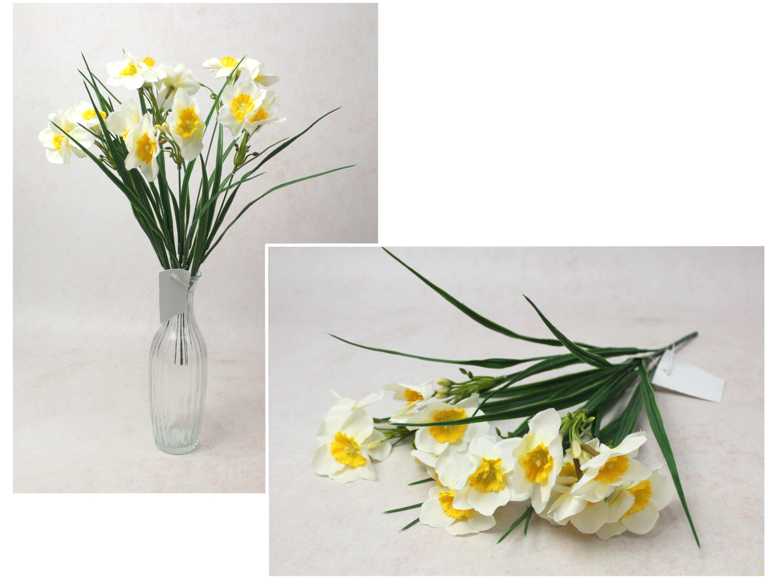 Bukiet ŻONKIL wys. 35 cm, 10 łodyg (9 kwiatów 4,5x2,5 cm) BIAŁY z żółtym środkiem