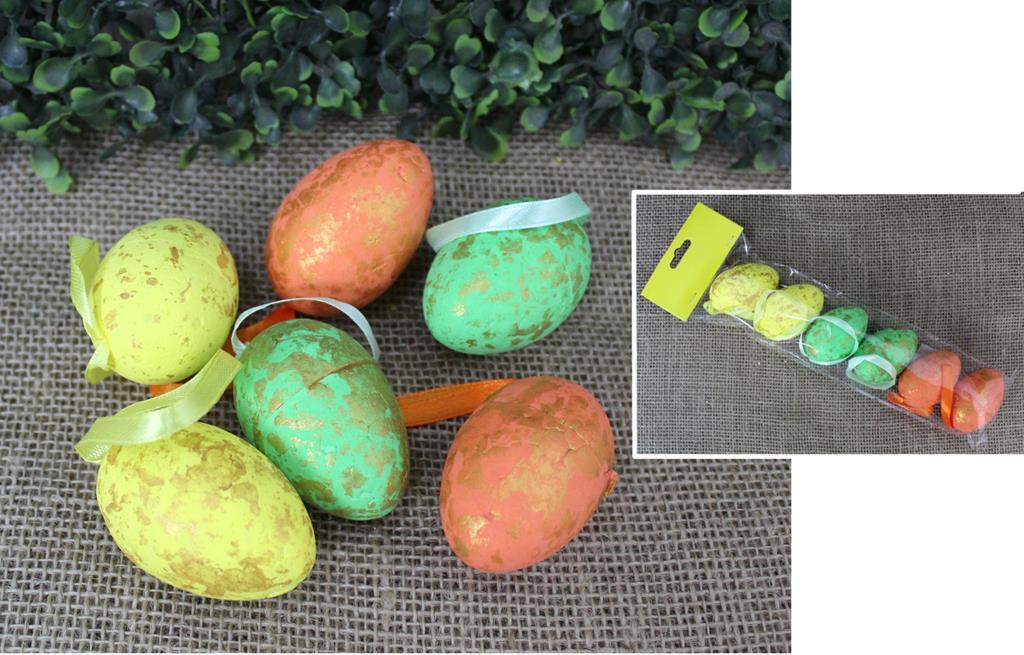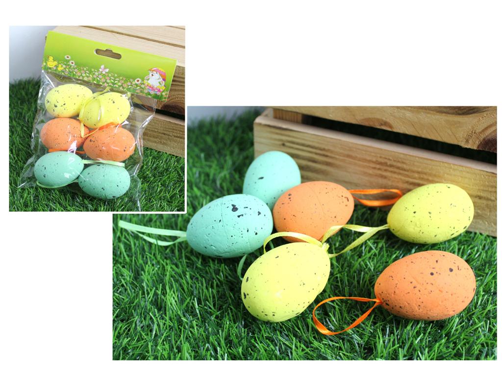 Wielkanocne jajka styropianowe z zawieszką KOLOROWE nakrapiane 5,5x4 cm kpl 6 szt