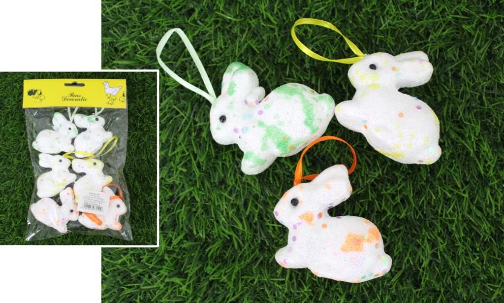 Zające styropianowe w brokacie z zawieszką (1 szt -7x5,5 cm) kpl 6 szt