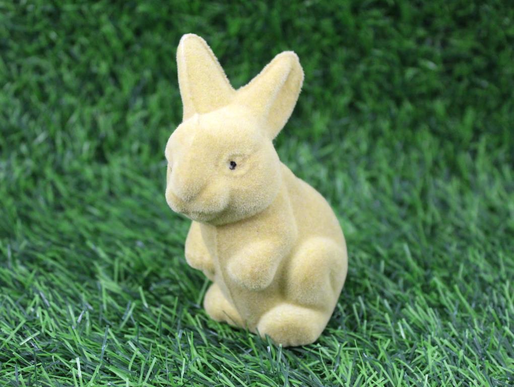 Zajączek Wielkanocny plastikowy FLOKOWANY 10x6x6 cm (024) MUSZTARDOWY