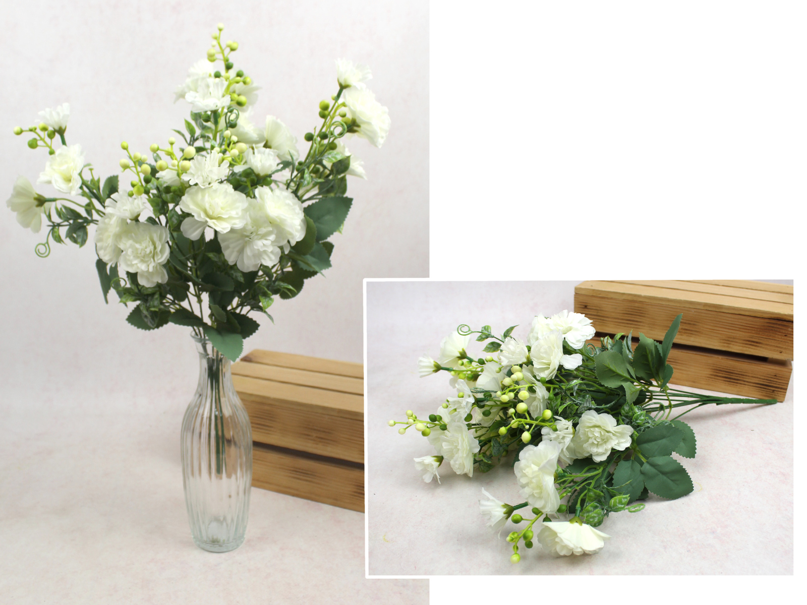 Bukiet GOŹDZIK wys. 43 cm, 9 łodyg (kwiat 6-4 cm) BIAŁY
