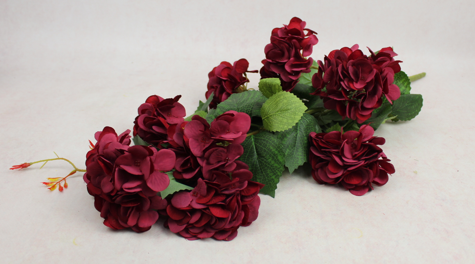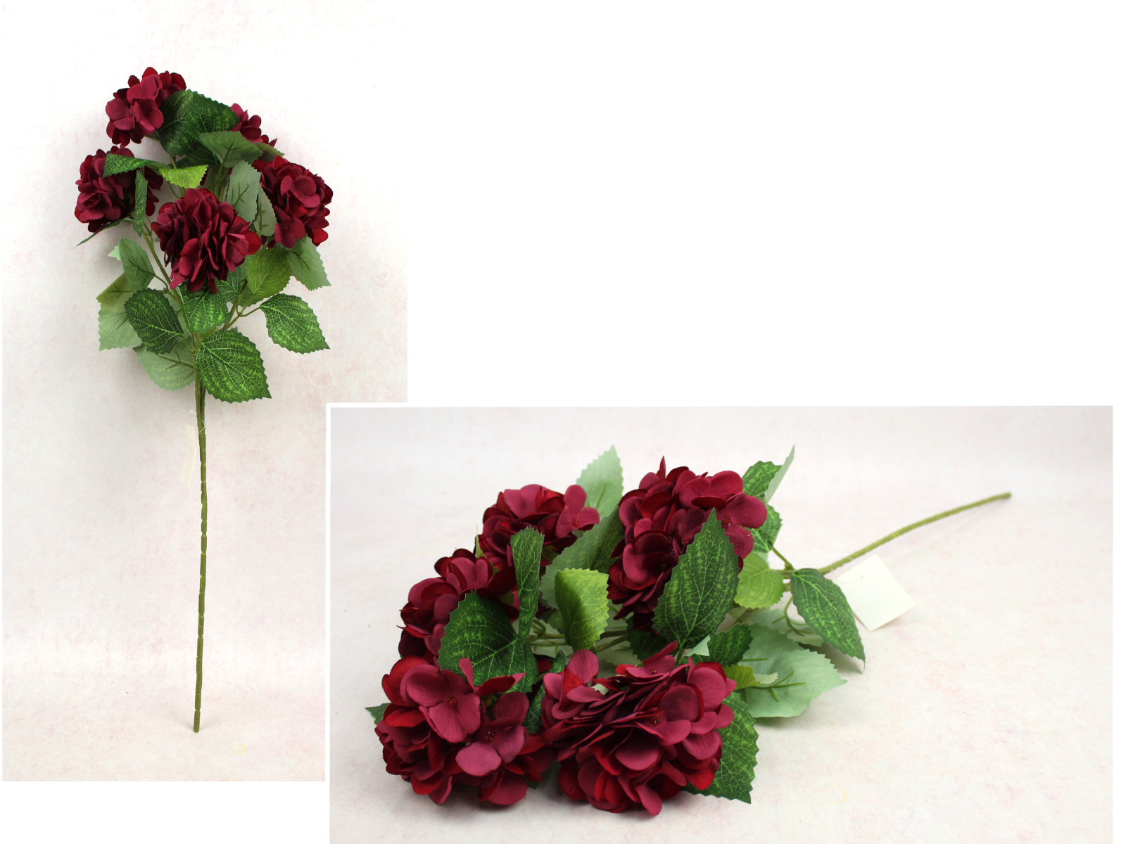 Bukiet HORTENSJA wys. 75 cm, 7 łodyg (8 kwiatów 10x6 cm) BORDOWA