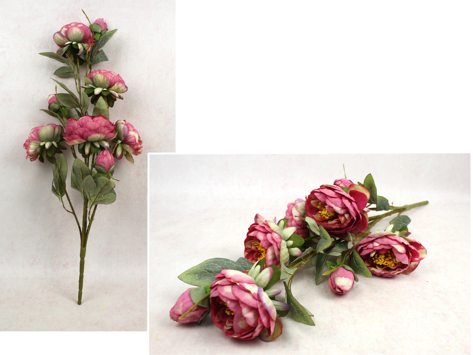 Bukiet PIWONIA wys. 69 cm, 7 łodyg (5 kwiatów 10x5 cm + 3 pąki) RÓŻOWA cieniowana