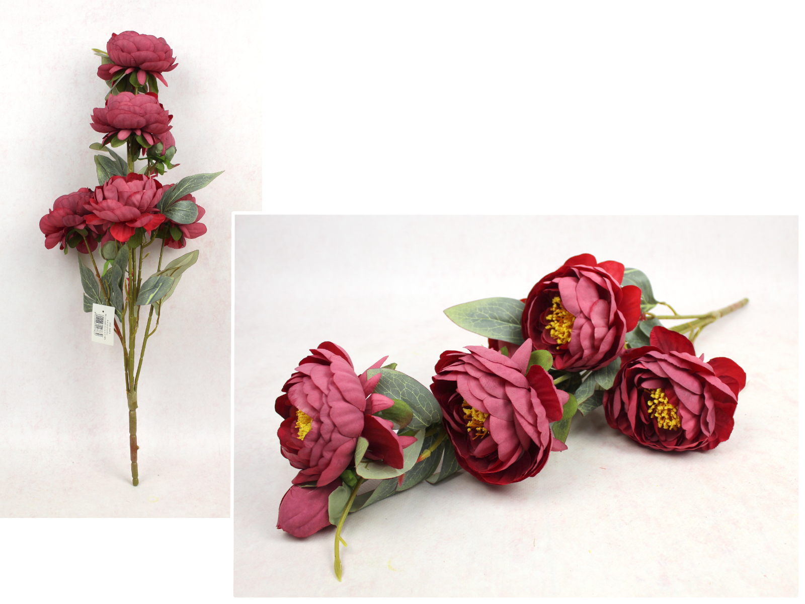 Bukiet PIWONIA wys. 69 cm, 7 łodyg (5 kwiatów 10x5 cm + 3 pąki) BORDOWA